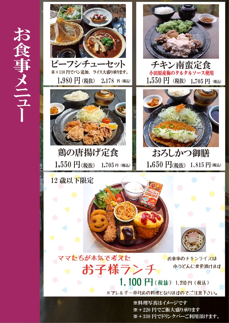お食事はオーダー制となり、レストラン悠瑠璃にて営業しております。カフェ守破離は無料休憩所(談話室)としてご利用頂けます。