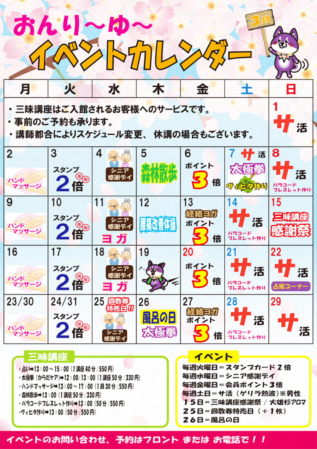 ※三昧講座をご希望のお客様は入浴ご利用のお客様に限らせて頂きます。